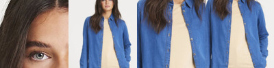 Classic long sleeve light weight denim shirt. Features include front button placket, button detail at cuffs and back yoke. Fashion fit. Turned hem with single needle stitch detail. Twin needle contrast stitching at side seams, sleeves and cuffs. Single needle contrast at armholes collar and front placket. 2 button placket at cuff. Modern narrow collar. Long sleeve. Yoke at back shoulder. No pockets for maximum embellishment area.