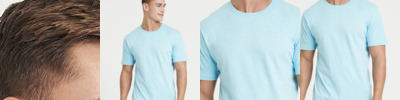 Modern fit. Short sleeves. Ribbed crew neck style with taped back neck. Twin-needle stitching detail on sleeve and bottom hem.