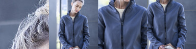 Neutral size label without branding, neck print possible. Rip cuff at the hem. Side pockets above hem. Bomber jacket style.