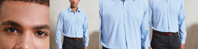 100% ringspun combed cotton.* Ribbed collar and cuffs.Taped neck.Three self colour button placket.Side vents.Twin needle hem.
