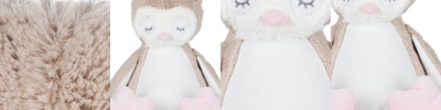 100% polyester. Soft plush light brown owl.Contrast nose and feet.White coloured panel on tummy and under wings.Removable inner pad.Zip access for decoration onto front panel.Suitable for embroidery, print and sublimation.
