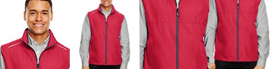 body: 1.2 oz. / 39 gsm 100% polyester with water resistant finish; lining: 100% polyester; insulation: 80 gsm thermal poly fil; center front zipper with autolock slider and reflective toggle; lower pockets with invisible zippers; stretch binding at armholes and hem; packable style into separate storage pouch;