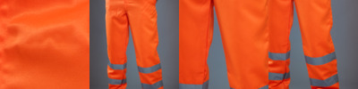 80% polyester/20% cotton. Conforms to EN ISO 20471: 2013 + A1: 2016 class 1.RIS-3279-TOM (orange only).Water repellent finish.Single pleat, part elasticated waistband with belt loops.Two side pockets.Rear jetted pocket with button closure.Two reflective bands around lower legs.Triple stitched seams.