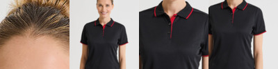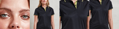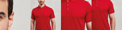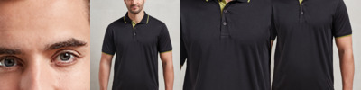 100% polyester micro piqué. Easy care, moisture wicking fabric.Ribbed collar and cuffs.Three self colour button placket.Panelled detail for more fitted shape.Side vents.Twin needle hem.