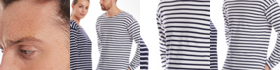 100% organic combed ringspun cotton. Organic or in-conversion to organic cotton. Yarn dyed stripes. Soft stretch fabric. Side vents. Drop tail. Twin needle stitching. Tear out label.