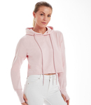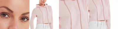 80% organic cotton/20% recycled polyester french terry.* Organic or in-conversion to organic cotton. Drop shoulder style. Loose fit. Three panel unlined hood with extra long drawcord. Cropped length. Deep ribbed cuffs with thumbholes. Twin needle hem. Tear out label.