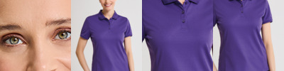 100% polyester. Easy care, moisture wicking fabric.Ribbed collar and cuffs.Taped neck.Three self colour button placket.Panelled detail for a more fitted shape.Side vents.Twin needle hem.