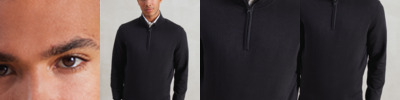 ¼ zip through collar fastening. Cotton rich yarn for a soft feel. Fine gauge knit. Set in sleeve with a ribbed knit cuffs and ribbed hem for fitted styling.