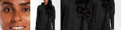 80% organic cotton/20% recycled polyester french terry. Organic or in-conversion to organic cotton. Drop shoulder style. Loose fit. Lightweight. Three panel unlined hood with extra long drawcord. Long length. Deep ribbed cuffs with thumbholes. Side vents. Twin needle hem. Tear out label.