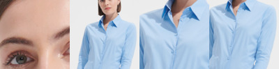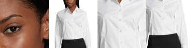 97% cotton/3% elastane. This item runs small in comparison to some other brands. Please check sizing before decoration.Easy care, wrinkle resistant fabric.Fitted style.Stiffened collar.Self colour buttons.Front and back darts.Adjustable cuffs.Curved hem.
