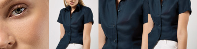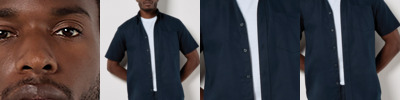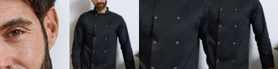 65% polyester/35% cotton twill. Easy care fabric.Soft touch and superior comfort.Mandarin collar stand with topstitching.Stud closure.Industrial laundry 85°C.Domestic wash 60°C.