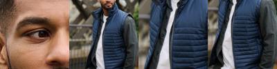 100% Recycled polyester interest face fabric with water-repellent cire finish. Recycled Thermoguard 160gsm insulation, and recycled polyester lining. Stretch binding to hem. 2 zipped lower pockets. Easily compressible. .