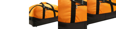 600D polyester. Carry handles with pad. Detachable adjustable shoulder strap. Haul handles at each end. Main zip compartment. Front zip pocket. Baseboard. Studded base. Capacity 93 litres.