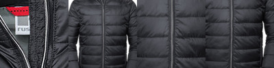 High performance DWR fabric treated with Aquapel by Nanotex®. Fluorine and PFC free. Eco-efficient padding by Dupont™ Sorona®. Stand-up collar with chin guard and inner storm flap to ward off wind and draught. Contrasting zips, lining and accents for a refined look. 2 side pockets and 1 zipped inside pocket. Stretch binding at sleeves and hem. Adjustable 3-parted removable hood. Discreet decoration access at inner left chest.