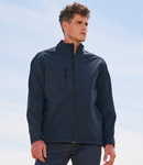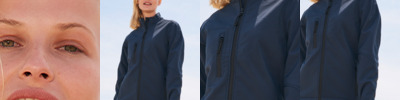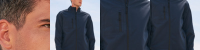 Three layer soft shell. 94% polyester/6% elastane outer.Polyester fleece backed.Mesh lined front panels.Showerproof, windproof and breathable.Shaped fit.Taped neck.Collar high full length zip with chin guard and inner zip guard.Right chest zip pocket.Two front zip pockets.Tear release adjustable cuffs.Adjustable drawcord hem.Drop hem.Access for decoration.
