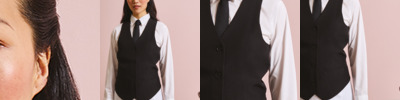 100% polyester. Easy care fabric.Fully lined.Four button contemporary style.Two functional watch pockets.Satin back.Back adjusters.