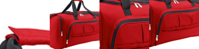 600D polyester. Carry handles with pad.Detachable adjustable shoulder strap.Large main compartment.End zip pockets.Front zip pocket.Baseboard.Studded base.Capacity 48 litres.