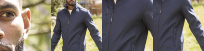 Two layer soft shell. Warm backed woven recycled polyester outer.Showerproof and wind resistant.Quick drying.Full length low profile zip with chin guard and inner zip guard.Right chest zip pocket.Two front zip pockets.Open cuffs and hem.Cut out label.