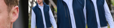 Two layer soft shell. Warm backed woven recycled polyester outer.Showerproof and wind resistant.Quick drying.Full length low profile zip with chin guard and inner zip guard.Right chest zip pocket.Two front zip pockets.Open hem.Cut out label.