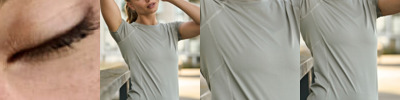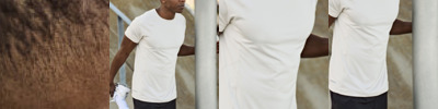 96/4 rayon/spandex Round neckline Wink heat transfer logo at hem Trim fit to easily layer under scrub tops without extra bulk