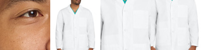 65/35 poly/cotton poplin Locker loop Left chest pocket with pen slot Top-loading front pockets Interior tablet pocket Back yoke with pleats 3-button placket opening Center back vent Wink heat transfer logo at left pocket Size medium: 31.5-inch back length