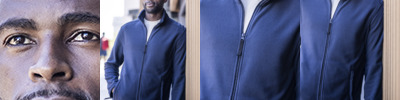 Contemporary fit and modern design. 100% cotton face yarn provides the best surface for decoration. Self-fabric welt pockets with concealed zip fastening (right). Flat, chunky drawcords. Rib at cuff and waistband.