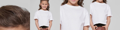 Set-in sleeves, short cut, round neck, rib at neck, twin seam at cuffs and hem.