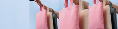 Handy cotton shopper. Handles 30 x 2.5cm. Perfect print surface. Cross-stitches at handle. Inside hemmed sewing.