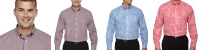 3.4 oz., 55% cotton, 45% polyester; Fine yarn count shirting; True Non-iron performance straight from the dryer; stain release finish; Classic Fit for professional appearance; Patented pucker-free taped seams; Fused collar cuffs and placket; Split back seam with bias cut back yoke; rolled button-down collar; adjustable Comfort Collar for up to an inch of stretch at neck; left-chest pocket; pearlized buttons;