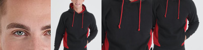 80% cotton/20% polyester. Brushed back fleece.Raglan sleeves.Two panel hood with contrast lining and drawcord.Contrast piping on sleeves.Contrast shaped side panels.Two front pockets.Ribbed cuffs and hem.