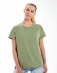 Relaxed fit T. Short sleeves. Side seams. PurePrint BC Cotton fabric. Taped back neck. Twin needle stitch details. Ribbed crew neck. Size label only for easy rebranding.