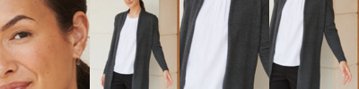 50% cotton/50% acrylic. Draped front loose fit.Set in sleeves.Semi-fashioned sleeves.2x2 ribbed detail from waist to hem and cuffs.Cut out label.