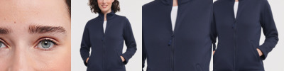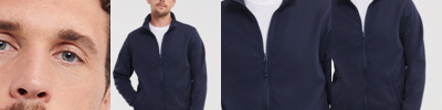 100% polyester micro fleece. Anti-pill dense knit.Unlined.Soft, light and high stretch fabric.Quick dry.Full length zip.Two front pockets.Open hem.Decorative stitch detail.