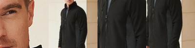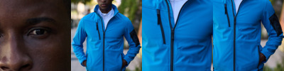 Two layer soft shell. 96% polyester/4% elastane outer.Polyester micro fleece backed.Collar high zip with chin guard and inner zip guard.Contrast breathable underarm and side panels.Right chest zip pocket.Inner pockets.Two front zip pockets.Open cuffs and hem.Drop hem.Cut out label.
