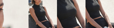 Tear-out label. Self-fabric funnel-neck. Fashionable cropped length. Twin-needle stitching at armhole and hem. Soft-stretch single Jersey fabric.