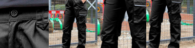 80% polyester/20% cotton. Yellow and orange conform to EN ISO 20471: 2013 + A1: 2016 class 1.RIS-3279-TOM (orange only).Black and navy provide enhanced visibility.Water repellent finish.Part elasticated waistband with belt loops.Self colour zip fly with button over.Two side pockets.Two cargo pockets with reflective tape and border trim.Rear pocket with button closure.Knee pad pockets.Two reflective bands around each lower leg.Branded woven tab on lower left leg.