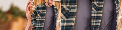 Yarn dyed fabric creating a gingham pattern. Long sleeve with single button cuff and sleeve guard. Narrow soft collar with button down options on the underside. Semi fitted. Easycare fabric.