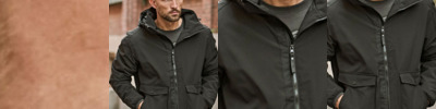 Fleece-lined stand collar. Back neck hanging loop. Full-length zip with inner zip guard. Two side front zipped pockets. Two inside chest pockets. Dropped back hem. Embroidery access on bottom back edge.