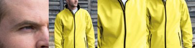 Two layer soft shell. Polyester soft shell outer.Recycled micro fleece inner layer (in transition).Elastane-free, crimped yarn stretch easy to print fabric.Showerproof, windproof and breathable.Decorative top stitch.Full length contrast zip with chin guard and inner zip guard.Two front zip pockets.Elasticated bound cuffs.Cut out label.Designed for direct print, embroidery and transfer print (not DTG).