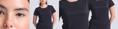 100% polyester. Neoteric™ smooth fabric with inherent wickability and quick drying properties.UPF 30+ UV protection.Relaxed ladies fit.Self fabric collar.Taped neck.Twin needle stitching.Tear out label.
