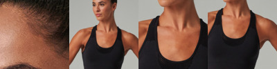 89% polyester/11% elastane. Seamless knit.Racer back style.Self fabric bound neckline, armholes and back.Mesh inserts on front and back.Removable padded cups.Tear out label.