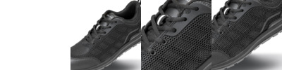 Thermoplastic PU. Water resistant leather trim.Moisture wicking lining.EN ISO 20345: 2011 SRA SB.Lightweight, unisex low cut sports trainer style.Breathable.Steel toe cap.Moulded PU scuff cap.Double density PU/PU sole.SRA slip and oil resistant outsole.Energy absorption heel.Padded tongue and collar.Heel loop.Spare insole set.