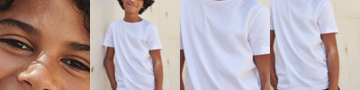100% organic cotton.* Organic or in-conversion to organic cotton. Modern fit. 1x1 ribbed collar. Roll-up sleeves with bar tacks. Twin needle hem. Tear out label.