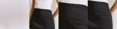 65% polyester/35% cotton twill. Crease resist finish.Easy care fabric.Two side zip pockets.Open middle pocket - tablet friendly.Self fabric 90cm ties.Width 60cm.Length 33cm.Industrial laundry 85°C.Domestic wash 60°C.