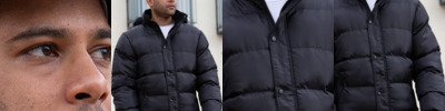 210T nylon with acrylic coating. 2x2 diamond stitching.Polyester padding.Polyester fleece lining.Showerproof and windproof.Corduroy inner collar.Full length two way zip with studded storm flap.Right chest zip pocket.Two patch pockets with stud closure and handwarmer side entry.Rear studded saddle vents.Back panel detail.Bound open cuffs.Open hem.Cut out label.