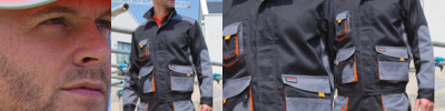 80% polyester/20% cotton twill. Unlined.Showerproof, windproof and breathable.Stand up collar with full length zip and studded storm flap.Deep front patch pockets with reflective tear release tabs.Multi-feature right chest pocket.Partially elasticated hem.Stud cuffs.