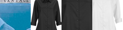This office essential has feminine extras, including a spread collar and convertible cuffs that look good folded up or worn down. 55% cotton/45% polyester, 3� oz. textured dobby fabric, spread collar, narrow reverse placket, polished pearl buttons, bust darts, back yoke, single needle tailoring, 3/4-sleeve with turn-back vented cuff, replacement button. Imported. XS-3XL
