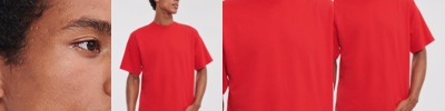 100% ringspun combed cotton. Front cover seaming on collar. Shoulder to shoulder taping. Tubular body. Twin needle sleeves and hem.