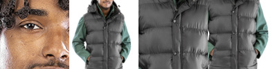 210T polyester outer with AC coating. Polyester micro fleece body lining.Polyester padding.Showerproof and windproof.Detachable, adjustable lined hood.Full length zip with studded storm flap.Two front zip pockets.Elasticated grip around waist and armholes.Cut out label.Access for decoration.