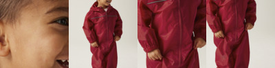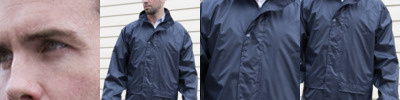 100% polyester with PVC inner coating. Waterproof 2000mm with fully taped seams.Windproof.Concealed hood.Full length zip with studded storm flap.Mesh ventilation panel on back.Two front pockets.Inner elasticated cuffs.Adjustable drawcord hem.Cut out label.